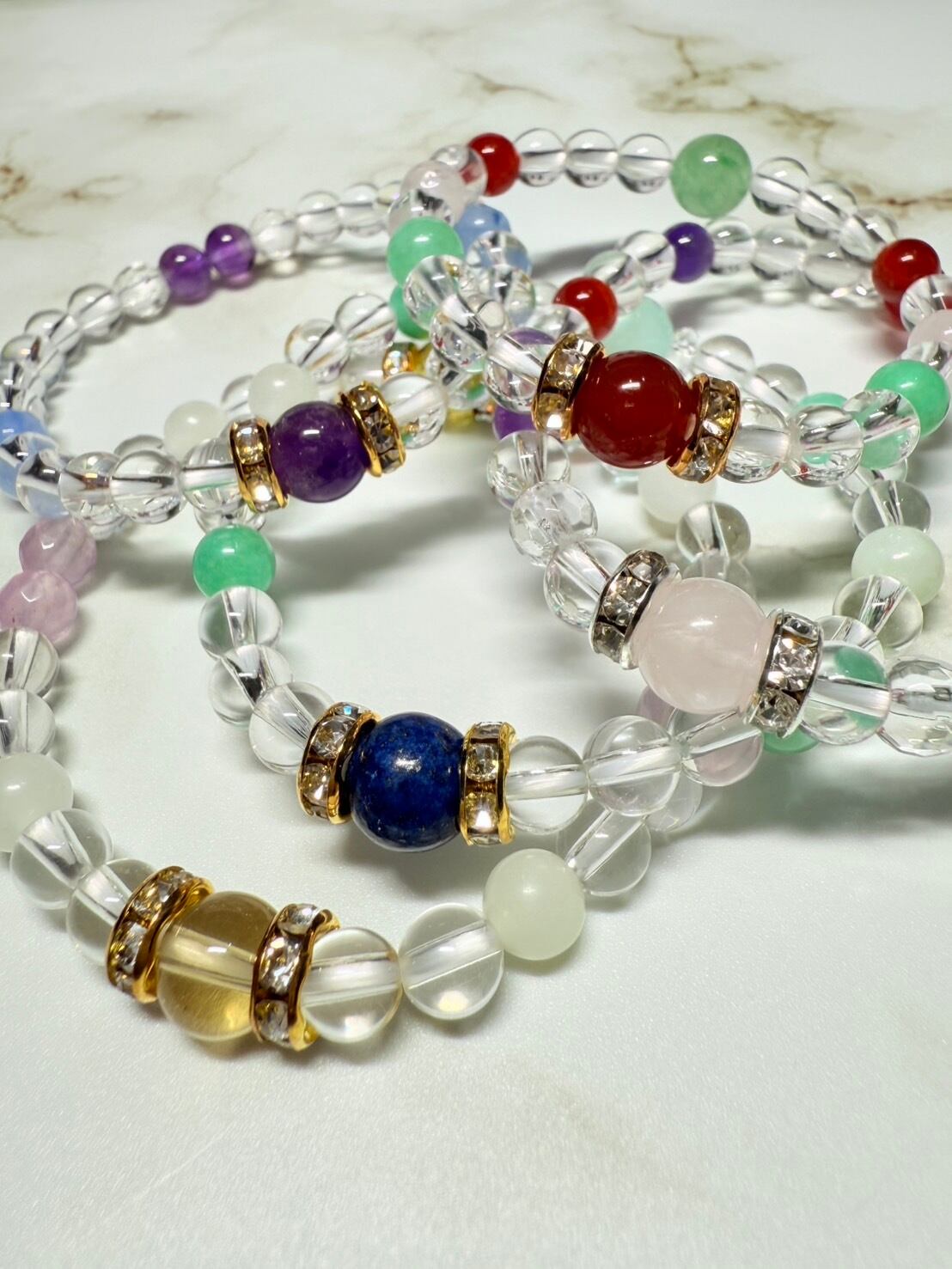 シトリンの豊かさ、レモンクォーツの輝き、そしてオーキッドの神秘的な魅力。これらの石のエネルギーが水晶の活性化作用によって増幅され、金運の流れを呼び込み、富と繁栄をもたらすサポートをします。内なる魅力を高め、チャンスを引き寄せる力も与えてくれるでしょう。